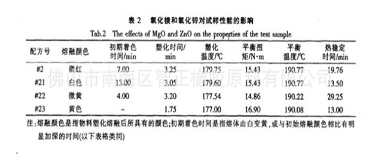 固定氧化鎂為分析純2。用HAAKE流變儀研究了不同規格氧化鋅的動態熱穩定性能與加工性能,試驗結果見表4。